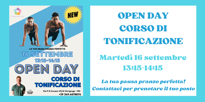 Iscriviti subito all'OPEN DAY che si terrà il 16 settembre dalle 13:15 alle 14:15, e scopri come ritrovare forma e vitalità senza stravolgere la tua giornata!