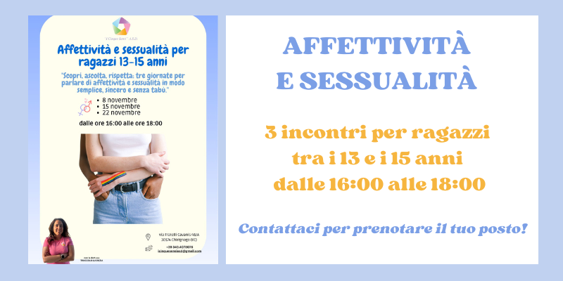 Un momento dedicato ai ragazzi dai 13 ai 15 anni per parlare in modo semplice, sicuro e rispettoso di affettività, relazioni e sessualità.